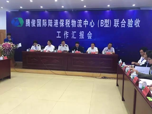 2017年6月30日,由昆明海關(guān)、財(cái)政部駐云南省財(cái)政監(jiān)察專員辦事處、云南省國家稅務(wù)局、國家外匯管理局云南省分局組成的聯(lián)合驗(yàn)收組,聽取了騰俊國際陸港保稅物流中心建設(shè)情況匯報(bào),對(duì)中心基礎(chǔ)和監(jiān)管設(shè)施建設(shè)情況進(jìn)行逐項(xiàng)檢查,觀看有關(guān)設(shè)施功能演示,審閱相關(guān)文檔資料,經(jīng)綜合評(píng)審,宣布中心通過聯(lián)合驗(yàn)收。