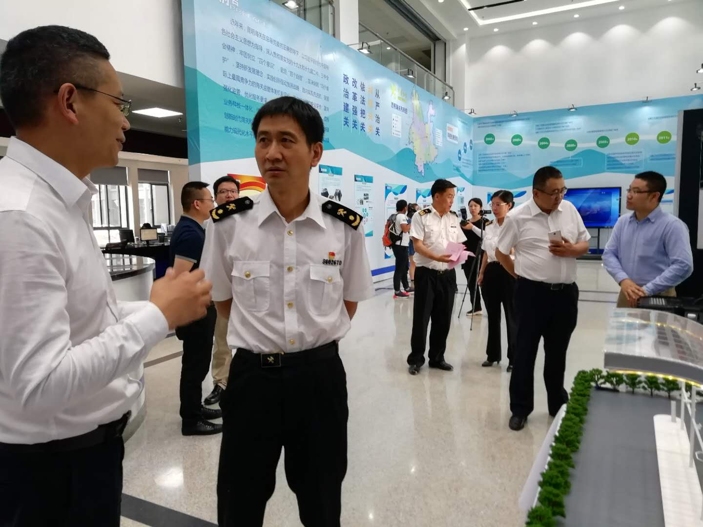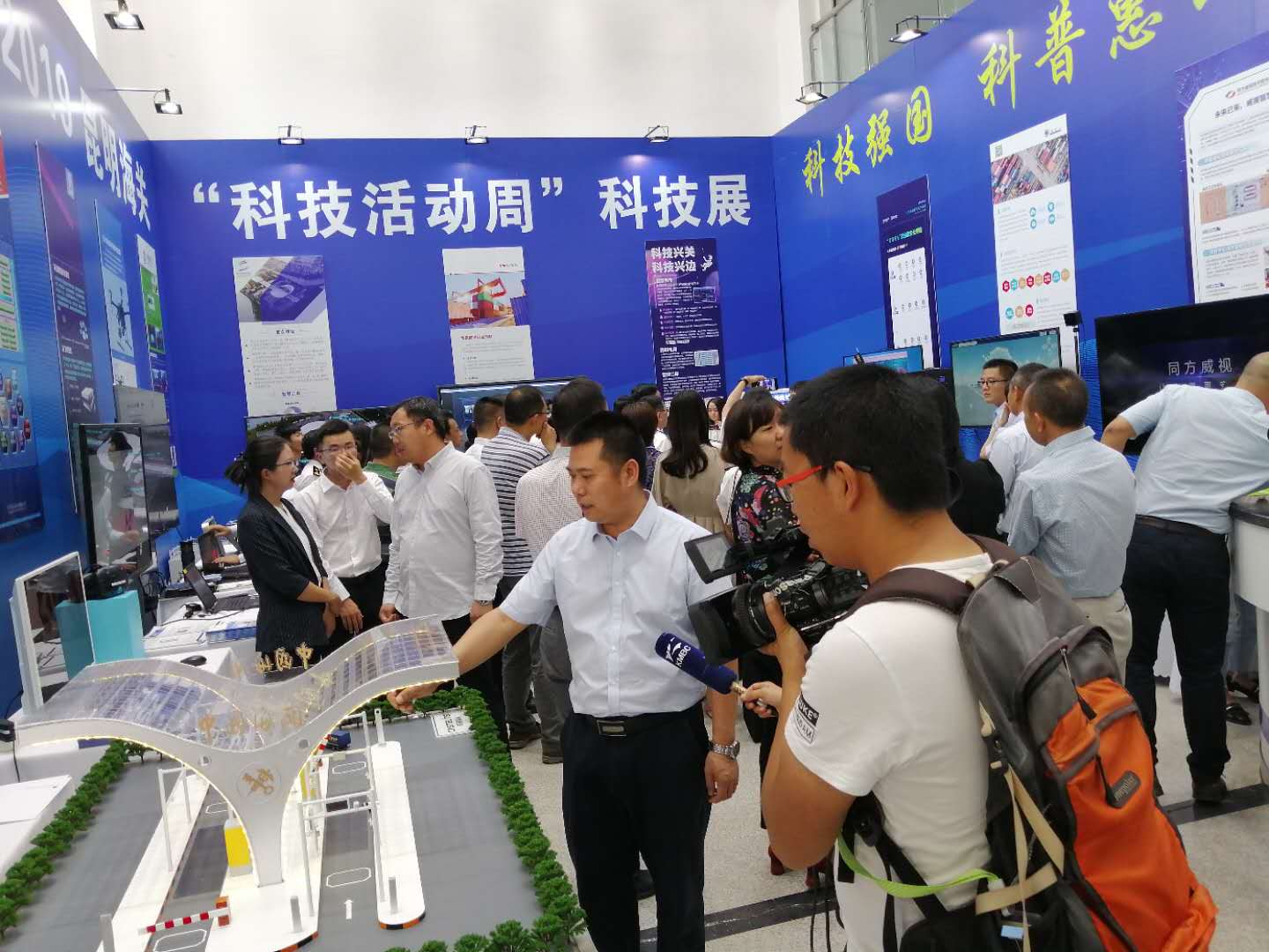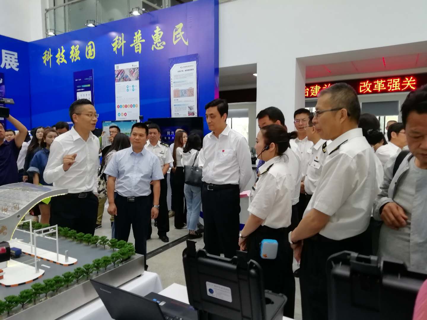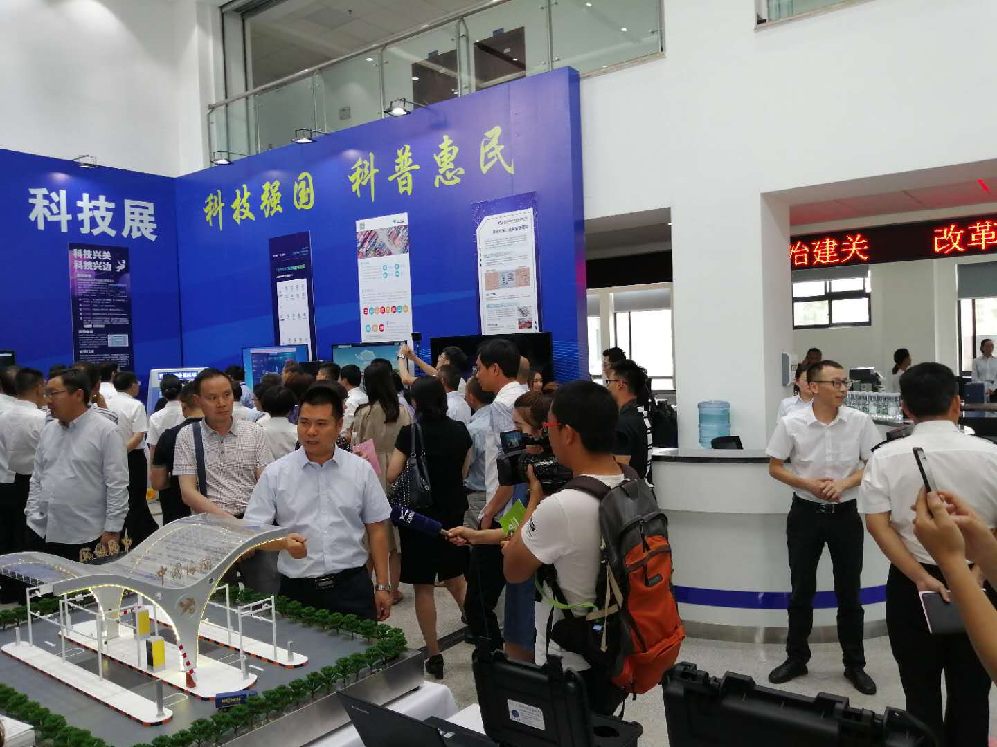 2019昆明海關(guān)“科技活動周”科技展于5月20日至5月26日在昆明海關(guān)一樓大廳正式開啟。本次活動周圍繞“科技強(qiáng)國、科普惠民”的主題,通過展板、展臺、體驗(yàn)式交互等方式,對科技創(chuàng)新助力云南口岸通關(guān)便利化的發(fā)展歷程、重大成果以及未來規(guī)劃進(jìn)行了展示。活動現(xiàn)場航通展出了所開發(fā)的云卡口系統(tǒng)等智能化軟硬件設(shè)備、全景業(yè)務(wù)監(jiān)測平臺、跨境電商解決方案以及邊民互市貿(mào)易申報(bào)系統(tǒng)等全套解決方案。