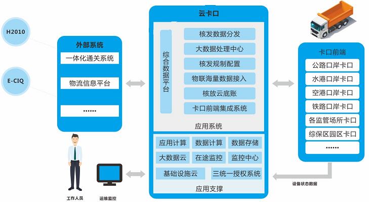 系統(tǒng)主要由前端嵌入式物聯(lián)設(shè)備、自適應(yīng)負(fù)載均衡總線、集中管控云平臺(tái)、綜合數(shù)據(jù)云底賬監(jiān)控平臺(tái)等組成,實(shí)現(xiàn)前端物聯(lián)設(shè)備分散式接入、集中管理,智能卡口云平臺(tái)集中部署,云底賬大數(shù)據(jù)智能分析,全面兼容各類卡口硬件和業(yè)務(wù)流程,實(shí)現(xiàn)物流底賬與車輛通行集中驗(yàn)放管理。通過(guò)云平臺(tái)集中部署,實(shí)現(xiàn)前端物聯(lián)設(shè)備自適應(yīng)接入與智能化運(yùn)行狀態(tài)分析,實(shí)現(xiàn)系統(tǒng)軟件插件式集中管理,以及不同卡口功能模塊的集中配置與推送。
